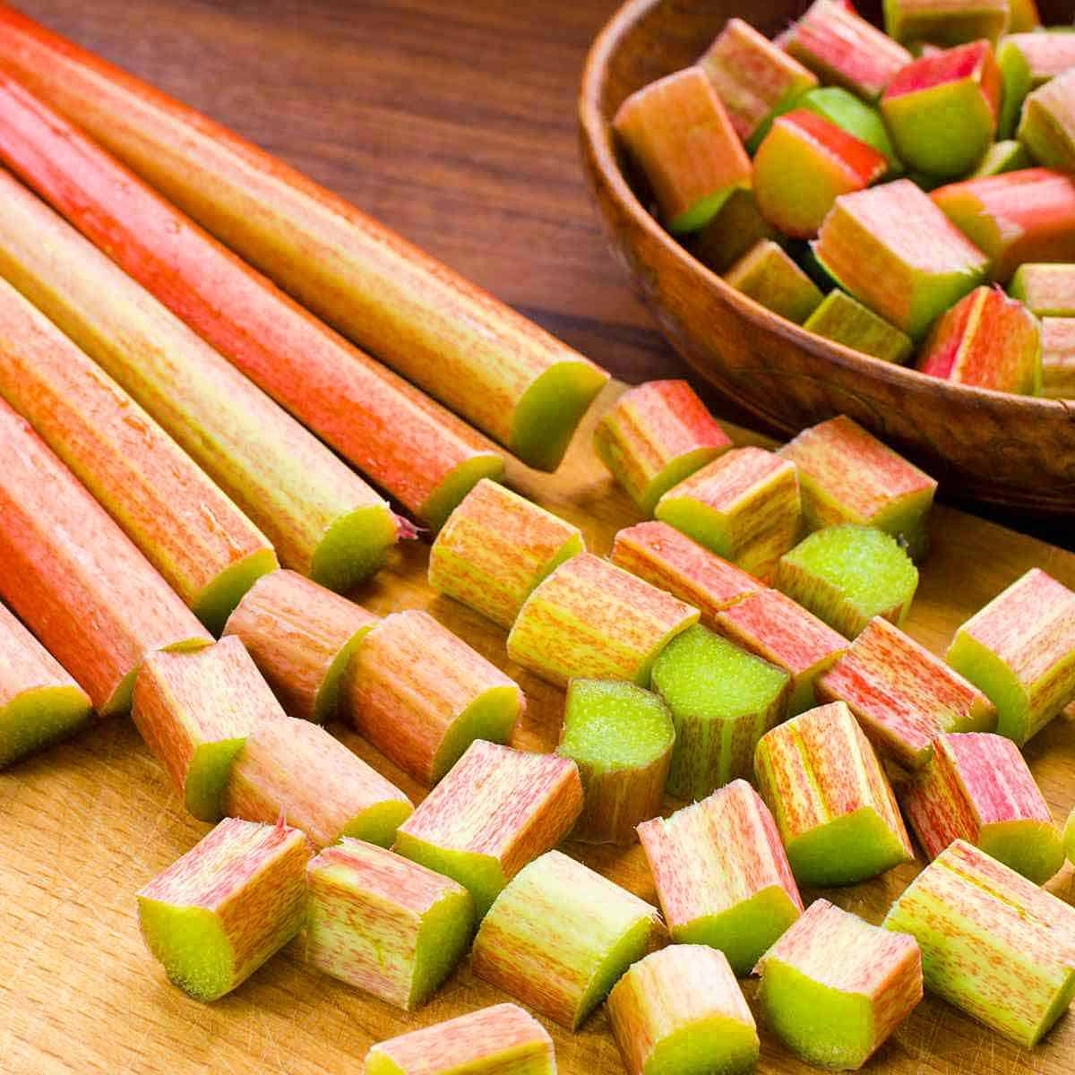 - Slice the rhubarb in 1-inch pieces (or your preferred size.)