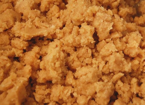 Use your hands to work the dry ingredients into the butter, until you have a crumbly mixture that looks like this: