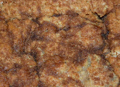 Alternatively, before you bake the cake you can add this streusel-y topping which originally appeared in a coffee cake recipe in Maxine’s book. Simply combine (in another small bowl! Aren’t you glad you bought the 4-piece set?) 1/2 cup brown sugar, 1 ½ tablespoons flour, 1 ½ teaspoons ground cinnamon and 2 tablespoons cold butter (the original recipe calls for unsalted butter, but you most definitely want salted butter).