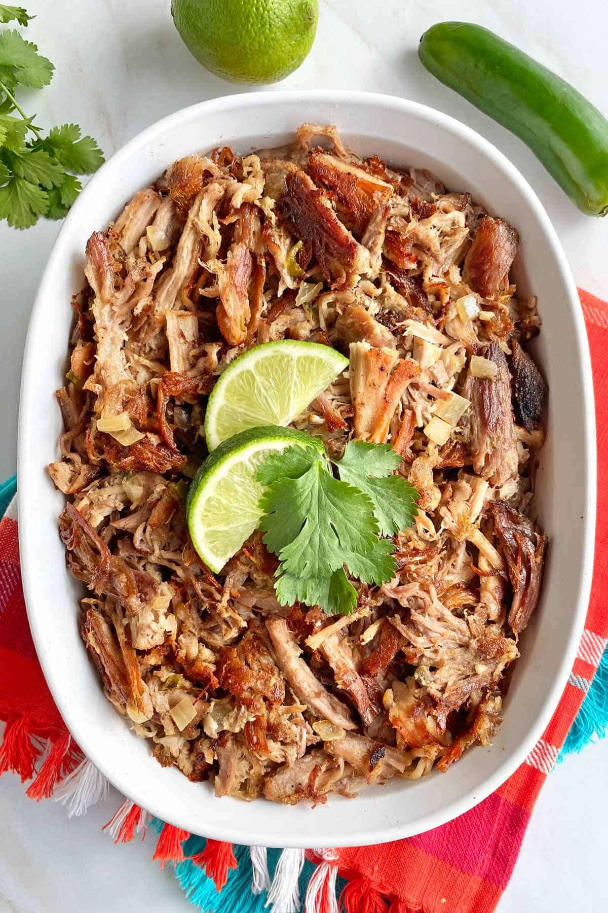 We also like to squeeze fresh limes on the finished Carnitas.
