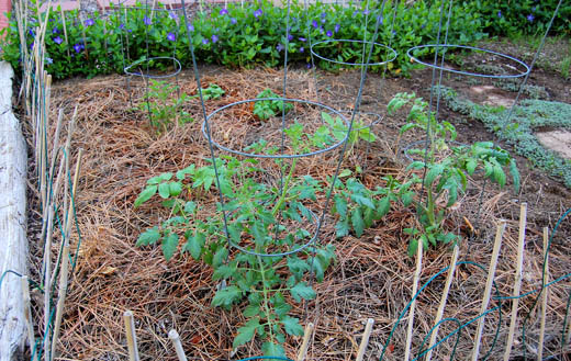 The bamboo and fencing are to keep rabbits out of the garden. I’ve noticed the sharp pine needles help deter them, too.