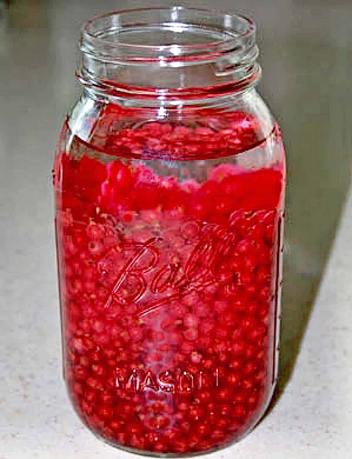 Wash the currants, remove any stems and gently pour them in a one-quart Mason jar. Pour the vodka in the jar, almost to the top.