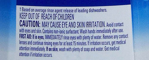 Rinse aid isn’t cheap, though, and it has another little problem. Have you ever read the back of the bottle?