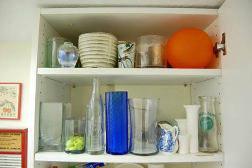 When I went through my last apartment I got rid of all but 2 vases, then after seeing I never used them, pulling out jelly jars and other glass jars I save and use for storing foods in I donated the last two. Love the open space you found after clearing out the cabinet.