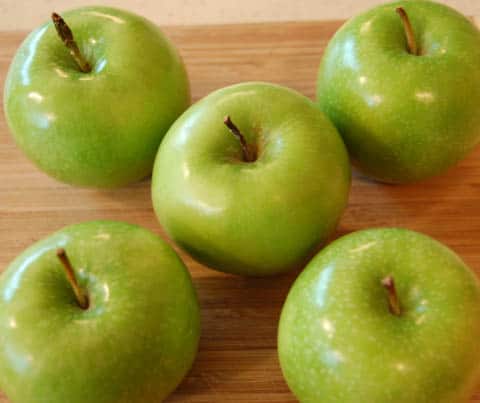 To prepare the cinnamon sugar apple cake, you’ll need 2 or 3 tart baking apples. I like Granny Smiths and Pippins, but feel free to use your favorites.