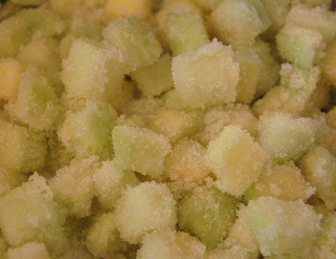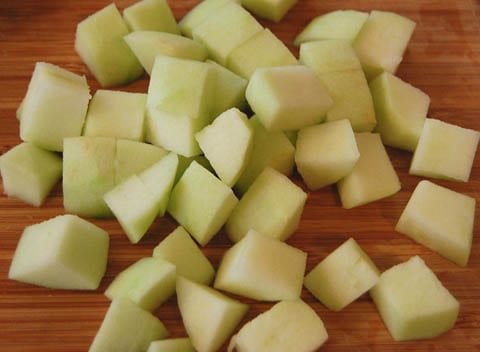 Peel and core the apples, and cut them into 1/2 inch pieces: